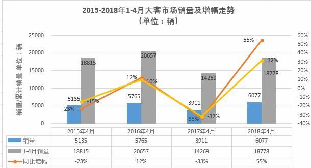 2018年4月份,我国客车市场销售3.94万辆,环比下降8%,同比增长12%。这其中,大型客车销售6077辆,同比大增55%,4月销量前十企业中,9增1降:表现最好的是排名第二的中车时代,1003辆的成绩,月度份额达到16.50%,和首位的宇通仅有37辆差距。从市场份额来看,销量前十企业4月 [详细]