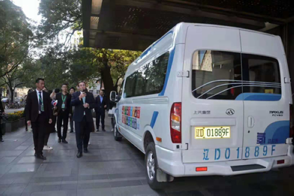 【配图:联合国开发计划署署长阿奇姆施泰纳试乘上汽大通MAXUS FCV80】