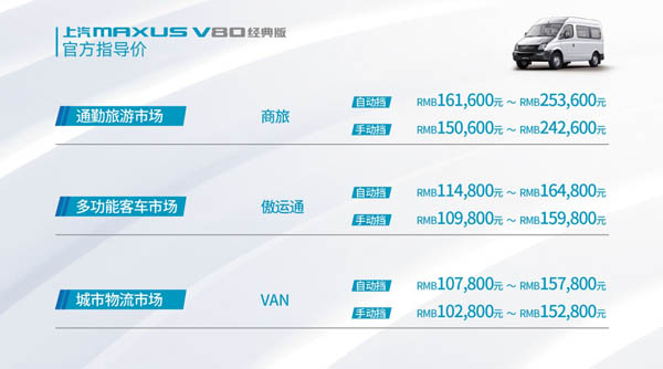 上汽MAXUS V80经典版的上市,是上汽MAXUS进一步拓展轻客市场的重要举措。作为首款互联网轻客,上汽MAXUS V80经典版凭借高效低耗、宽绰空间和更低使用成本等优势,无疑将在10万元区间的轻客市场内展开一次新的洗牌,为消费者带来更智能、更领先的产品选择。