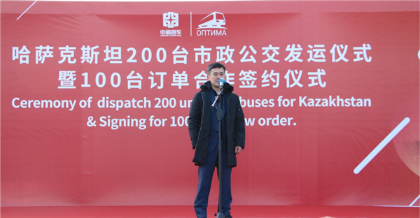 在交车仪式上,孙总发表了热情洋溢的讲话。孙总指出,哈萨克斯坦早已成为“一带一路”倡议中丝绸之路经济带的重要枢纽。而阿拉木图市更是哈国乃至整个中亚区域的重要经济中心和交通枢纽,未来十年对清洁新能源客车的需求很大,战略地位尤为突出。众所周知,中通客车是国内最早致力于清洁新能源客车生产的上市公司之一。中通客车定将不辱使命,不辜负合作伙伴、经销商、阿拉木图市民对中通客车给予的重托与厚望,做好产品和服务,为哈萨克斯坦清洁交通出行做出更多更好的贡献。