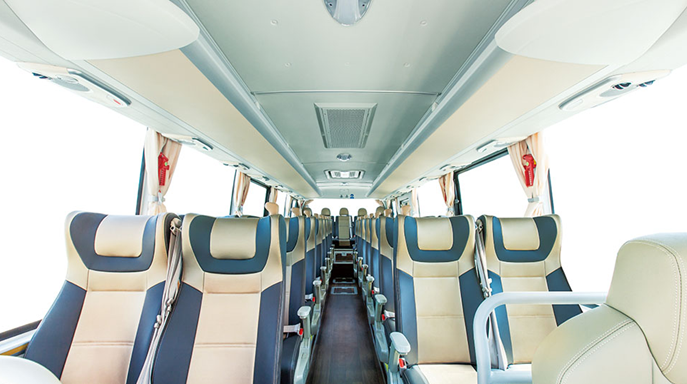 抗菌座椅可有效降低车内接触感染的风险。宇通客车通过在座椅面料中植入抗菌丝和抗菌涂料来达到抗菌效果,可有效抑制细菌附着,起到抑菌或杀菌的作用,同时座椅采用低气味海绵,气味等级较德国VDA270标准还低0.5。