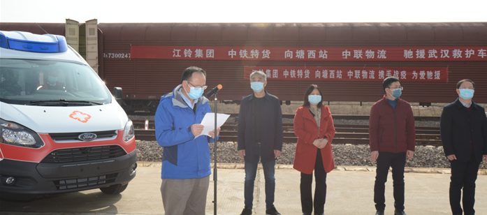江铃股份第一执行副总裁金文辉感谢各方对江铃的大力支持,祝江铃负压救护车专列一路平安。