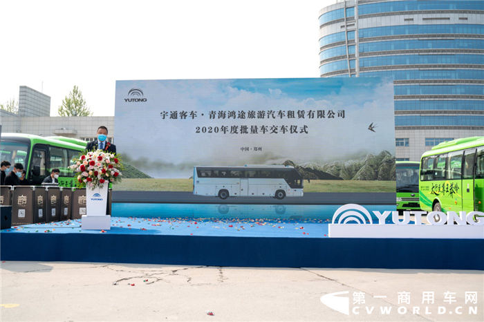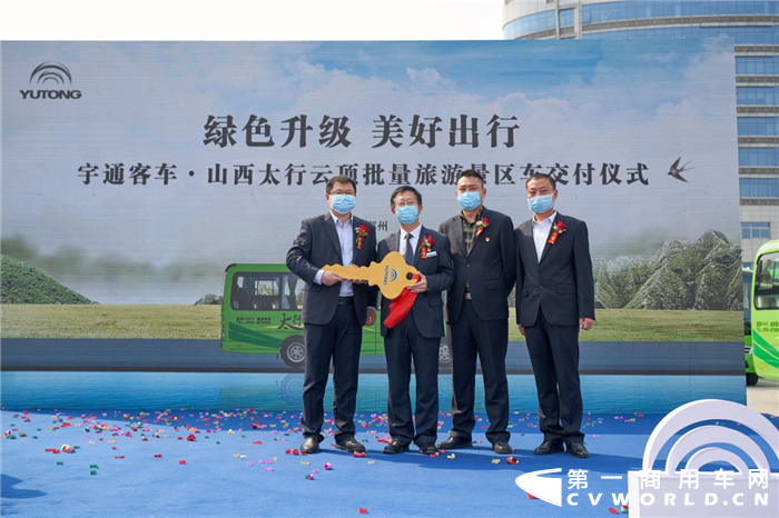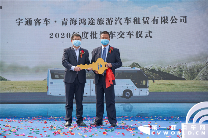 4月7日,在河南郑州宇通工业园内,批量宇通旅游客车正式交付山西陵川县太行云顶旅游开发有限公司(以下简称“太行云顶旅游公司”)、青海鸿途旅游汽车租赁有限公司(以下简称“青海鸿途旅业”)和青海龙途旅游汽车租赁有限公司(以下简称“青海龙途旅汽”)三家客户,其交付车型均为针对客户需求定制化打造的高端旅游客车,而交付山西的车型也是宇通在全国的首批国六高端景区车。该批车的交付开启了宇通旅游客运市场高端定制化的新篇章,为旅游客运市场高质量发展提供了支撑和参考。