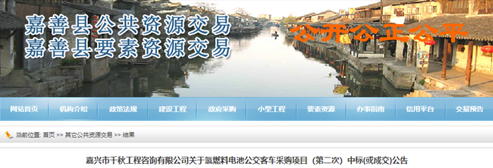 近日,浙江省嘉善县公共资源交易中心发布公告,厦门金龙旅行车有限公司以1.486亿元的报价中标当地氢燃料电池公交客车采购项目。本次采购将在2019年采购8.5米系列车型氢燃料电池公交客车50辆,2020年采购12米系列车型氢燃料电池公交客车20辆,8.5米系列车型氢燃料电池公交客车30辆。项目预算价为2亿元。 [详细]