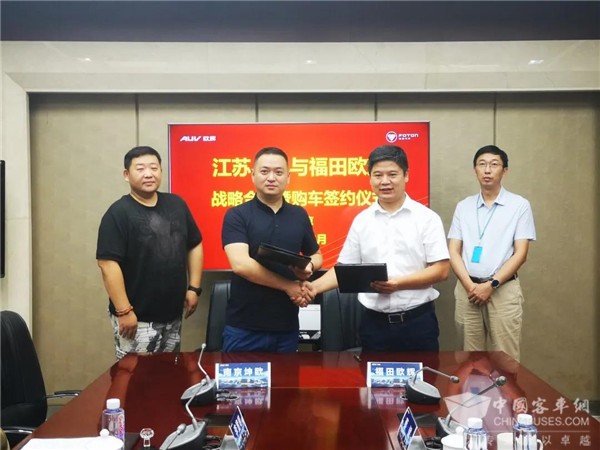 近日,江苏坤欧集团旗下南京上为信息科技有限公司与福田汽车欧辉客车事业部战略合作暨购车签约仪式圆满成功。坤欧集团董事长李义仁、南京上为信息科技有限公司总经理李宽明,福田汽车欧辉客车事业部质量与采购副总裁韩冬等出席签约仪式。