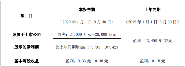 2020年1-9月份业绩预告情况