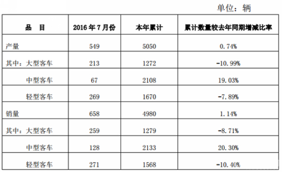 8月5日,安凯客车发布关于2016年7月份产销情况的自愿性信息披露公告,报告显示安徽安凯汽车股份有限公司截至 2016 年 7 月份产销快报数据如下:
