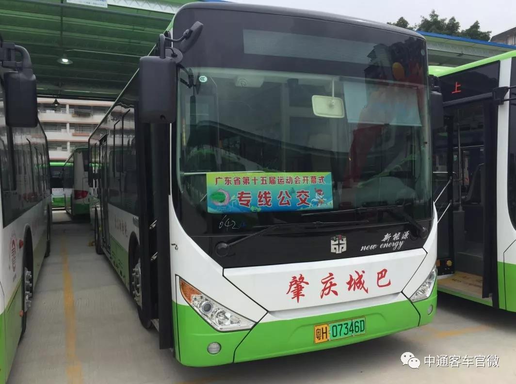 2018年,广东省第十五届运动会将在肇庆举行。为了响应绿色省运,在广东省省运会前,肇庆市对城区现有的燃油公交车进行了大范围的招标更换。经过激烈角逐,中通客车赢得其中30台10米电动公交订单。8月3日,肇庆市公共汽车有限公司在人民南公交站场举行“迎省运•肇庆市纯电动公交车投入使用仪式”,该批30台车正式交付。