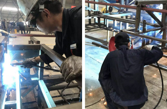 好几次经过车间的时候,我都被焊工们的劳动景象所折服。他们中有好多是90后,但电焊的技术却是一流的;他们吃苦耐劳、朴实、脚踏实地,用辛劳和汗水支撑起自己的家庭;他们在焊接时不断攀高爬低,有些狭窄的空间只能半蹲着作业,腰酸背疼是常态;中午午休时间他们更多的是席地而坐亦或是席地而睡,为的只是多上一丝丝凉意。