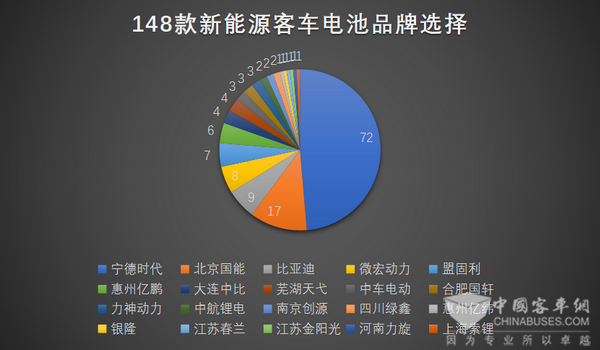 从电池品牌看,为新品配套的电池品牌相比第311批的28家有所减少,有20家电池配套企业为本批客车提供电池。宁德时代、北京国能、比亚迪、微宏动力、盟固利等占据着动力电池领域的市场优势。