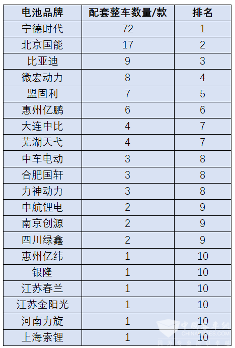 20家电池企业提供配套,宁德时代依然第一
