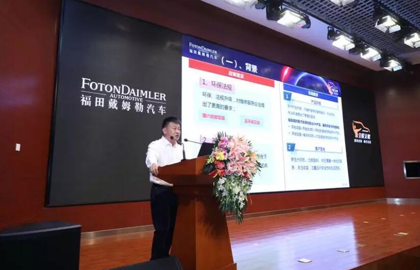 福田戴姆勒汽车营销公司常务副总经理刘岸平介绍欧曼8大定制化服务产品
