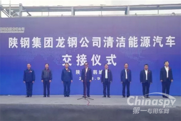 2018年9月27日龙钢集团陕汽天然气自卸车交车仪式在陕西韩城市隆重举行。韩城市副市长孙长虹、韩城市环保局工信局等部门领导、陕重汽销售公司副总经理魏尚攀、陕钢集团龙钢公司总经理刘安民、陕重汽销售公司西安办事处区域总经理王建勋、韩城市腾达汽车修理厂总经理师建亭以及龙钢各运输车队百余人参加了本次活动。