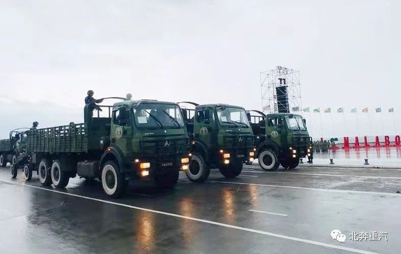 北奔重汽作为中国兵器工业集团成建制武器系统、体系化解决方案中的一员,此次提供的39台北奔重卡是中国兵器工业集团军贸项目中的重要组成部分,政治意义重大。接到任务后,北奔重汽高度重视,严格落实“为客户创造全寿命周期的产品价值最大化”的理念,主要领导组织召开启动会,由制造、研发、质量、进出口等部门骨干组成项目组,严抓生产交付过程中的每一个环节,选派培训、服务、商务专家赴赤道几内亚执行售后保障任务,成功将“质量提升、品牌建设项目”的成果运用到项目的全过程。参加受阅的北奔重卡2628A军用越野汽车底盘具有承载能力强、可靠性高、环境适应能力强的特点,广泛应用于国内各军兵种,并大量出口到国外军车市场。高品质的产品、用心的服务保障得到了北方公司和使用国的高度认可。