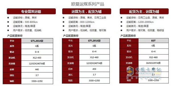 针对2018款运煤车,欧曼还特别推出了不同的车型,通过使用不同的发动机、变速箱和后桥的搭配,满足不同的卡友们的需求。不管是专业从事煤炭运输的卡友,还是运煤为辅的用户,都能找到适合自己的产品。