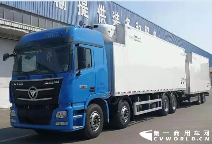 此次展览会推出的冷藏固定式中置轴货车列车,由福田戴姆勒汽车与中集车辆(山东)强强联合打造,完全符合国标GB1589-2016规定,8×4型中置轴货车列车长度≤20m,厢体采用闭式发泡技术,具有轻质、美观、良好的防腐蚀性能、耐洗涤性及较高的硬度,具有环保、节能及抵御普通化学物品和细菌及微生物的侵蚀等优势,完全满足食品包装运输的需要。