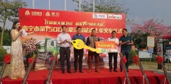 11月4日,为助力首府南宁城市建设,保卫碧水蓝天,同时为广西壮族自治区60周年大庆建设项目保驾护航,中国重汽在南宁市隆重举办“2018年南宁市第1500台豪沃智能渣土车交车暨亲人服务免费体检月启动仪式”。