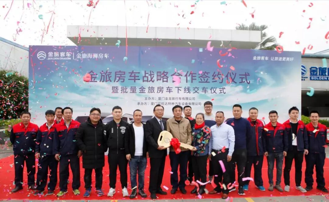 2018年12月12日上午,金旅房车战略合作签约仪式暨批量房车下线交车仪式在厦门可旺达特种汽车设备有限公司隆重举行,厦门金龙旅行车有限公司轻型车事业部销售公司总经理郭鸣先生、厦门可旺达特种汽车设备有限公司总经理高旭东先生,河北省、江苏省、广东省等各省金旅房车客户及合作伙伴,央广游讯(北京)等媒体朋友和来自各行各业的嘉宾们共同出席仪式。