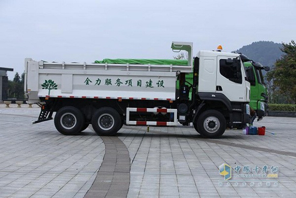 而轻量化方面,乘龙H5渣土车在保障承载、安全的前提下,对底盘进行优化设计,并应用轻量化材料,如车架、悬架、储气筒、油箱等,使自重降低300公斤以上,自重更轻,承载更多,油耗更低。