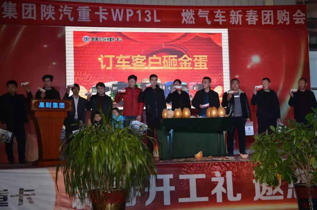 陕汽重卡榆林地区成功地举办了“新春开工礼,邀您抢头彩”天然气牵引车团购会。活动由陕西泉财公司主办,陕重汽销售公司西安办事处、法士特榆林办事处、金融平台、各挂车厂家代表以及终端客户200余人参加了本次盛会。