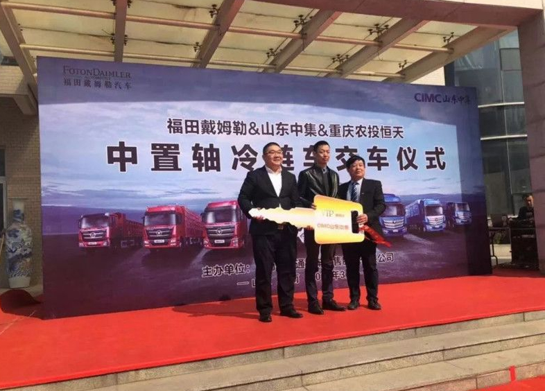 此次交付的冷藏固定式中置轴货车列车,由福田戴姆勒汽车与中集车辆(山东)强强联合打造,搭载460马力福田康明斯发动机,扭矩高达2300N·m,完全符合国标GB1589-2016规定,8×4型中置轴货车列车长度≤20m,厢体采用闭式发泡技术,具有轻质、美观、良好的防腐蚀性能、耐洗涤性及较高的硬度,具有环保、节能及抵御普通化学物品和细菌及微生物的侵蚀等优势。