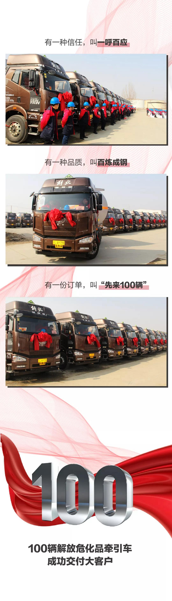 近日,辽宁惠华盘锦解放4S店与盘锦广通汽车运输有限公司,100台危化品牵引车交车、开车仪式在盘锦辽东湾新区顺利举行。