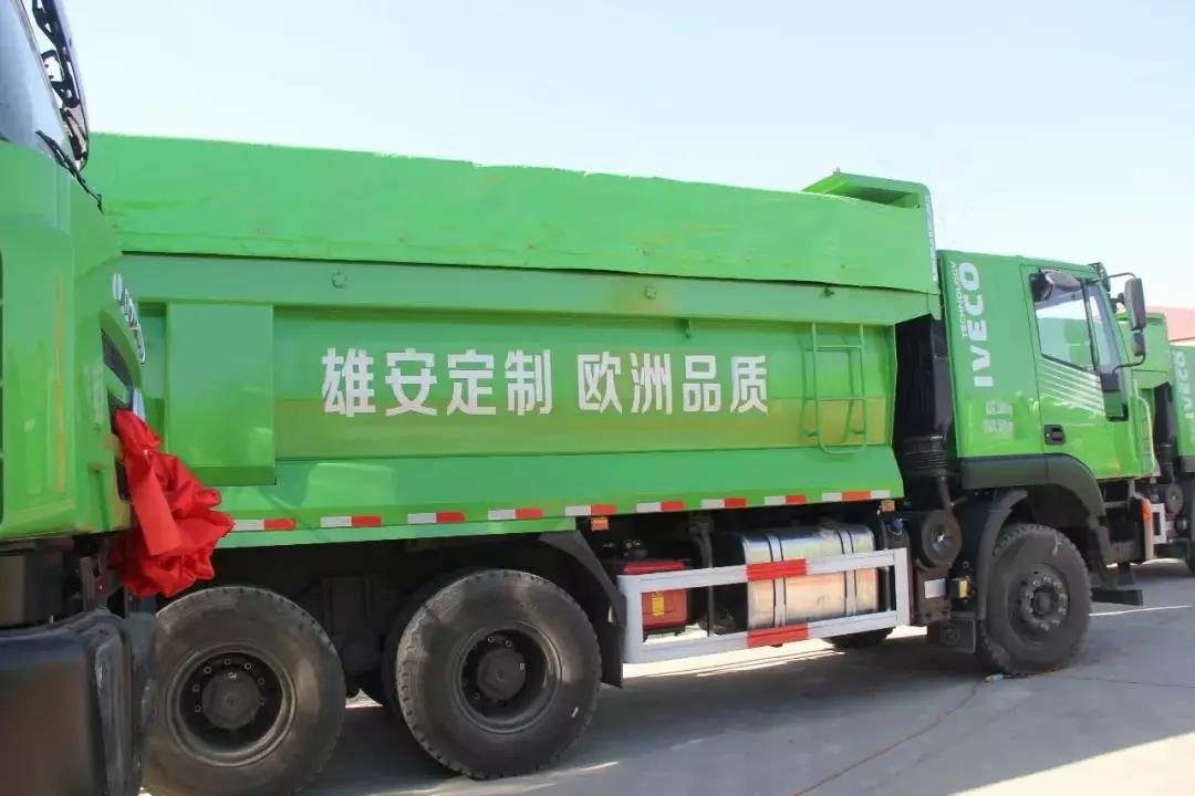 近日,30辆配套上汽动力E系列发动机——上汽红岩杰狮C500 6*4LNG的渣土车交付雄安北六车队。