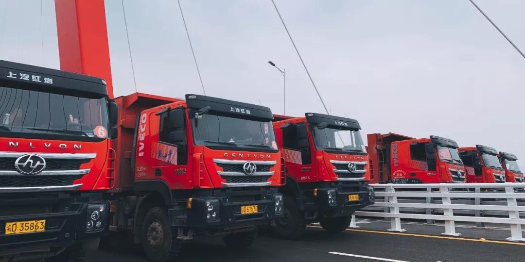 据悉,此次荷载试验用车全部为上汽红岩杰狮自卸车,共计48辆,每辆装载后总重35吨。分批开上大桥,一排排整齐的红岩自卸车恢弘气势扑面而来,顺利配合完成了当天的荷载试验。