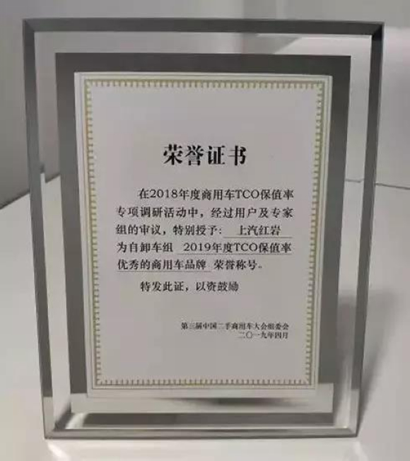 近日,在第三届中国二手商用车大会上,中国汽车流通协会商用车专业委员会正式向社会发布了国内首份TCO保值率优秀商用车品牌评价报告。在2018年度商用车TCO保值率专项调研活动,经过用户以及专家组的审议,上汽依维柯红岩商用车有限公司(以下简称“上汽红岩”)荣获自卸车组2019年度TCO保值率优秀的商用车品牌荣誉称号。