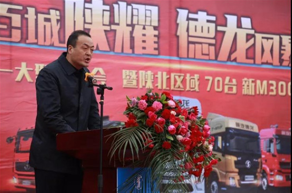 活动伊始,陕重汽销售公司陕西区域总经理王建勋为此次活动致辞:陕北市场一直以来都是陕西区域的优质市场,感谢定边市场一直以来对陕汽产品的信赖与支持,本次活动结合陕北市场需求与定边森豪威公司强强联合,推动陕北市场进入更深层次的合作。