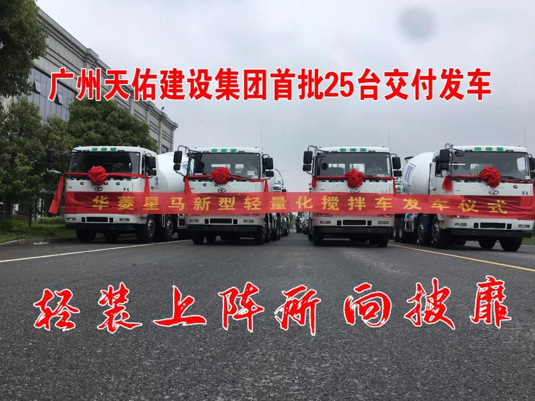 6月21日上午,在公司主干道上,25辆四桥轻量化搅拌车披红挂彩、整装待发!吉时一到,该批车辆便缓缓驶出公司大门,奔赴千余公里,交付广州天佑建设集团。