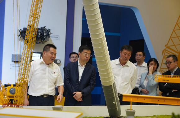 在徐工机械副总裁吴江龙等领导的陪同下,葛海蛟行长一行人首先参观了徐工展厅