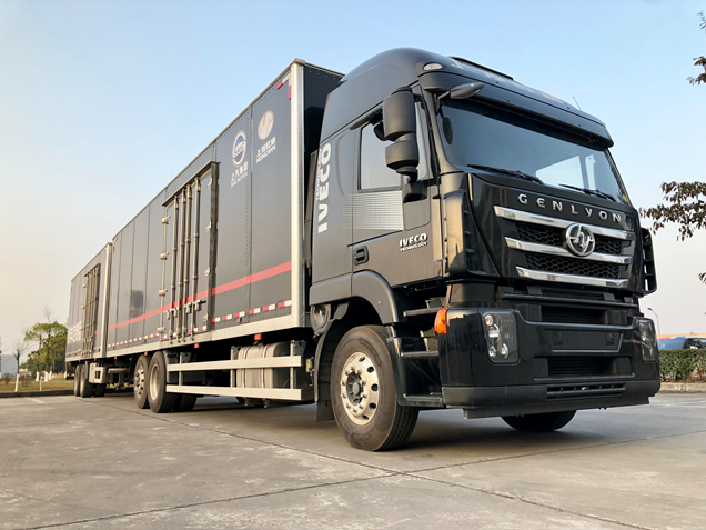 值得一提的是,主、挂车科学结合的货箱组合方式是其另一大亮点,可根据日常货物运输需求和运输路线,选择最优组合模式,相较于传统的单货箱卡车来说,双货箱可实现快速装卸货物和高效的甩挂运输,明显提高运输效率。装卸货时,货箱两边可以同时大角度打开,主、挂货箱可同时装卸货,大大节省了装卸时间。