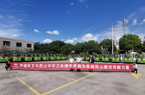 20台宇通环卫纯电动自装卸式垃圾车交付昆山,为城市环境保驾护航!