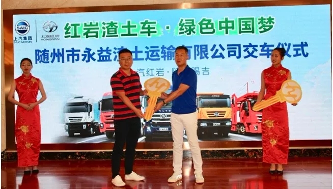2019年7月25日,红岩杰狮智能渣土车成功交付湖北随州用户,上汽红岩湖北分销中心服务经理、上汽红岩湖北分销中心商务代表、湖北随州渣土车用户代表等百余人参加了交车仪式。