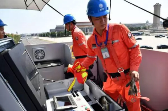华灯作为天安门广场上标志性的景观和照明设施,是国家名片和举国繁荣的象征。为迎接中华人民共和国七十华诞,北京市城市照明管理中心于7月31日下午开始了对长安街253座华灯、6000多盏光源的全面清洗检修工作。