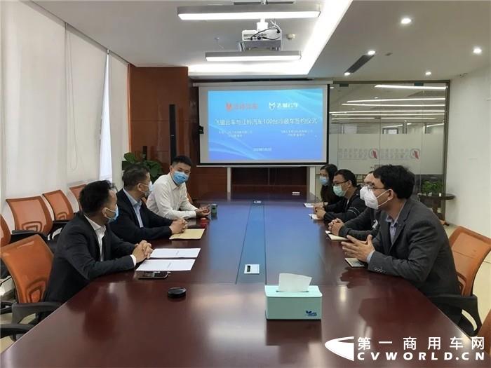 3月2日上午,江铃汽车与飞猫云车在深圳举行100辆冷藏车签约仪式。