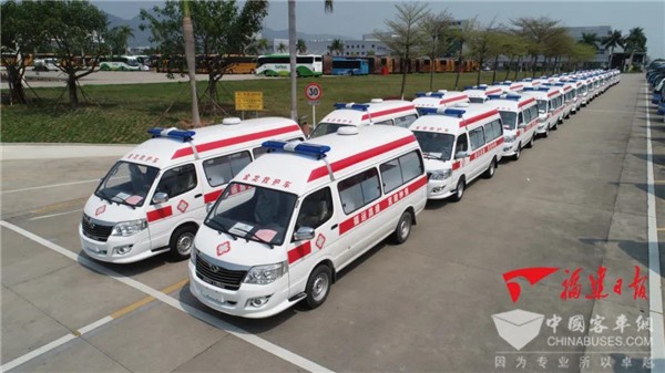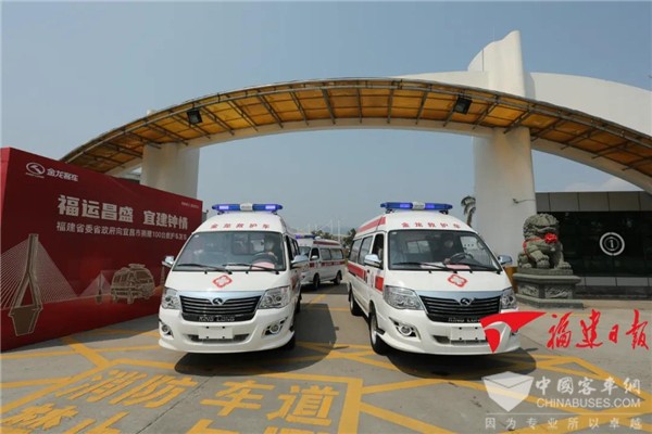 为支持福建省对口支援的湖北宜昌市开展新冠肺炎疫情防治工作,经福建省委省政府研究同意,3月12日,省财政厅安排资金用于购置100辆转运救护车,支持宜昌市强化乡镇卫生院等医疗机构急救能力。中标此批转运救护车采购项目后,厦门金龙客车迅速部署,充分发挥生产转运救护车的丰富经验,以最快的速度推进生产,于3月22日圆满完成生产任务。