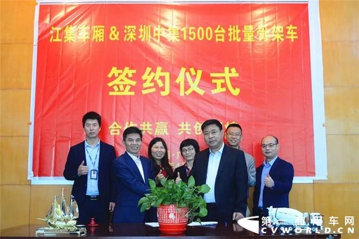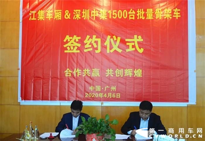 4月6日,深圳中集专用车有限公司(以下称:深圳中集)同广州市白云区江集车厢厂(以下称:江集车厢)在广州白云举行签约仪式,签订1500辆批量骨架车订单,实现了双方合作的新突破。