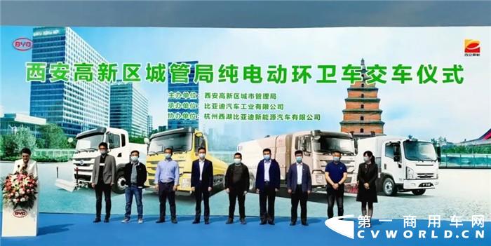 4月29日,“西安高新区城管局纯电动环卫车交车仪式”在西安比亚迪高新厂区举行。这是继2018年首次投放后,西安高新区又一次投运比亚迪纯电动环卫车。比亚迪本次共交付86辆纯电动环卫车,以全球领先的新能源技术和制胜产品力,大力推进西安环卫车电动化进程,助力西安建设绿色之城、生态之城、宜居之城。