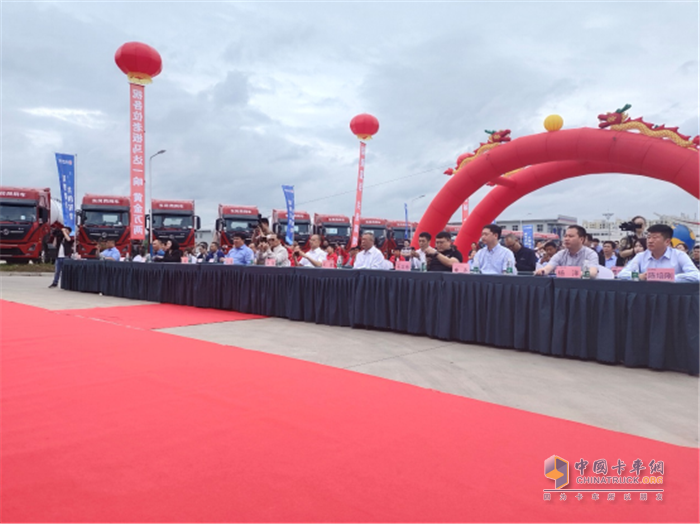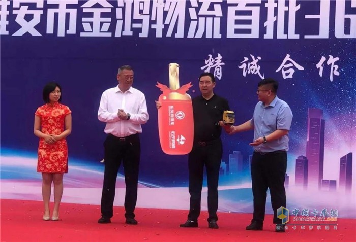 2021年5月11日,东风商用车&山东金浩物流共同举行雅安市金鸿物流首批36台东风天龙KL燃气车交车仪式,山东金浩物流有限责任公司董事长王敏、总经理王文东、副总经理陈培刚;雅安市金鸿物流有限责任公司副总经理王彦;东风商用车有限公司市场与营销领域西部营销中心副部长杨洋;东风汽车贸易有限公司副总经理邱波及相关业务公司负责人出席交车仪式。
