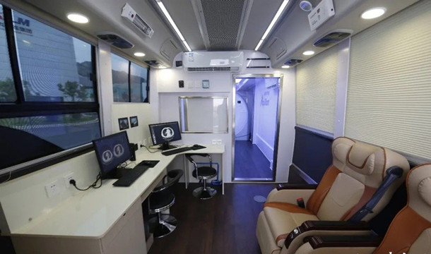 目前,CT检查已经成为医学诊断不可或缺的重要手段。疫情爆发后,机动灵活的CT医疗车,突显了可独立可隔室检查的优势,成为了新冠快速诊断的有效辅助装备!作为一直倡导“健康移动空间”理念的金旅客车,依托在健康医疗领域丰富的生产制造经验,金旅已开发涵盖5-13.2米各个长度段的医疗体检车,集常规体检及应急医疗救援等功能于一身,突破了现有检测技术对人员和场所的限制,缩短检测用时,提升便捷程度,推动诊断前移下移,真正实现了疑似患者的快速诊断和密切接触人群的现场筛查。在金旅看来,新一代医疗体检车的研发不仅能够帮助应对当下的新冠肺炎疫情,对于未来抗击其他流行性病毒疫情也会起到支持作用。