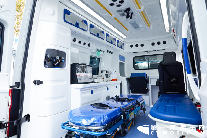 本次交付的江淮星锐急救之光系列长轴高顶救护车,车身长度5840mm,车宽2098mm,为医疗设备提供11.3m³大空间;内高1840mm,医护人员车在内可直立行走,400mm内舱过道,通行无碍;车内搭载除颤起搏监护仪、心电图机、呼吸机、进口上车担架等监护型医疗设备,有效保证重症患者的救护开展。