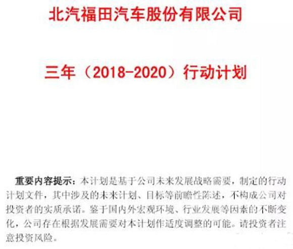 2018年5月21日获悉,福田汽车发布三年(2018-2020)行动计划。