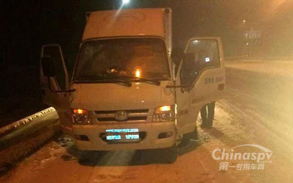 午夜时,福田时代滨州亚圣服务站突然响起了急促的电话铃声,工作人员接起电话了解到,原来是山东淄博高青的张泉城师傅在行驶到滨州公铁大桥与黄河大桥交叉口处突然熄火,无法着车。外面风雪天气,天寒地冻,张师傅十分着急。