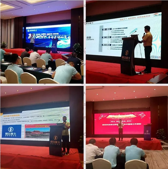 内蒙区域的营销精英在此齐聚一堂共商营销大事,重点研究与分析18年下半年重卡市场新形势,新变化,新机遇,面对复杂的争压力,如何对照标杆、细分市场与提升份额,包头办事处区域经理邹先桃作出2018年营销工作部署。