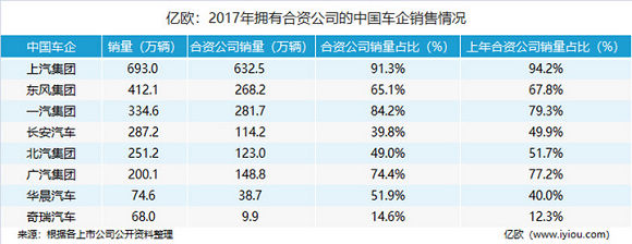 然而,从上表可以看出,华晨宝马、北京奔驰绝非个例,所以我们仍不能肯定下一个被外资控股的合资车企就是北京奔驰。在我国主要国有汽车集团中,大部分企业的半数以上销量都来自合资公司。而在利润方面,合资公司的贡献还可能更大。上汽集团旗下合资品牌贡献的利润超过集团净利润的总和,一汽和东风孱弱的自主品牌更加依赖合资公司的“输血”。