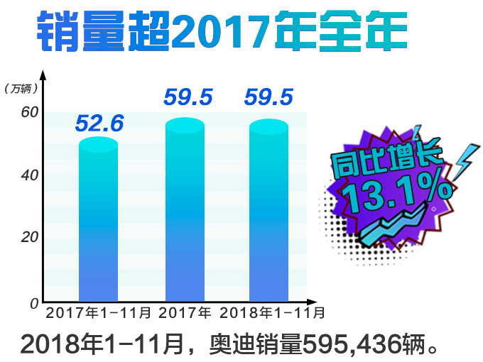 2018年以来国内乘用车市场出现大幅放缓,连续多个月份出现负增长,豪华汽车市场却保持着10%左右的高位增长,头部阵营的奥迪更是跑赢豪车市场大盘。一汽-大众奥迪官方数据显示,奥迪品牌1-11月累计销售新车595,436辆,同比增长13.1%,更是超过去年全年527,723辆的销量。产品方面,A4L、A6L、Q5家族今年累计销均超过11万辆,位居各自细分市场前列。