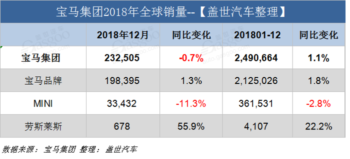 根据宝马集团官方公布的销量数据,2018年,宝马集团连续8年实现销量创纪录,宝马品牌、MINI以及劳斯莱斯品牌全球累计交付量达2,490,664辆,较2017年微增1.1%。其中宝马和劳斯莱斯品牌销量创历史新高,宝马电动车和MINI品牌销量同比激增38.4%,使得宝马集团连续15年蝉联全球第一高档汽车制造商地位。