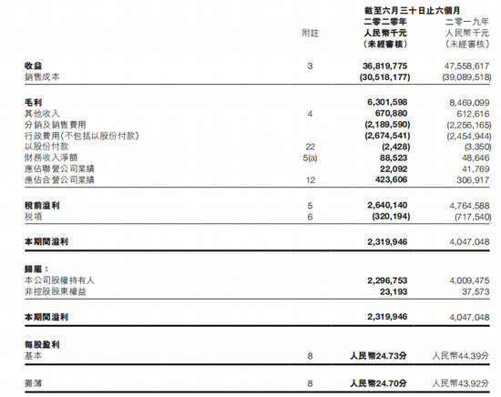 昨日,吉利汽车控股有限公司(股票代码:00175)发布2020年中期财报。截至6月30日,吉利控股共实现营业收入368.2亿元人民币,同比下降22.58%;股权持有人应占溢利的降幅为42.68%,几乎是营收降幅的两倍,共计盈利23.2元人民币;每股摊薄盈利下跌44%至人民币24.70分。